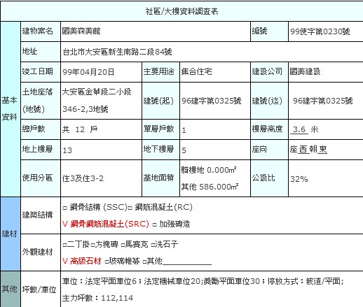 大安區國美森美館位于新生南路二段交通大道上,由國美建設興建的國美森美館基地面積佔177坪,在建物規劃上,國美森美館為地上13層、地下5層的獨棟建筑單層單戶僅12戶,坪數規劃分為112及114坪,皆為百坪以上大空間規劃,托顯住戶大器風范。