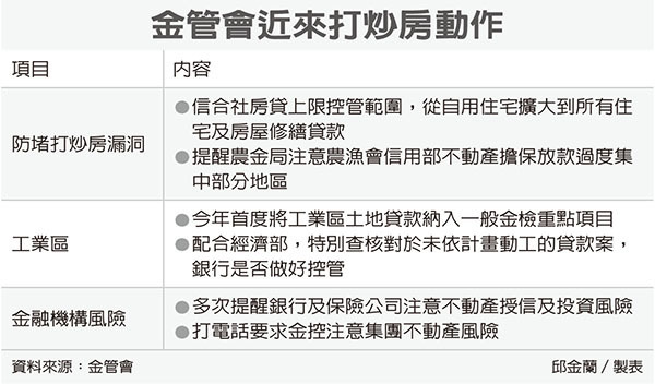 金管會打炒房行動擴(kuò)及信合社,將信合社辦理房貸額度的控管范圍,從原本只有自用住宅貸款,擴(kuò)大到所有住宅貸款及房屋修繕貸款,兩者合計不能超過存款的55% ,以利信合社做好房貸業(yè)務(wù)的風(fēng)險控管。