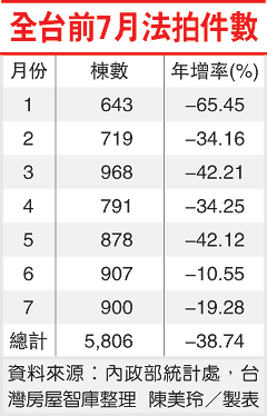 全臺法拍屋件數(shù)再創(chuàng)新低,據(jù)臺灣房屋統(tǒng)計,今年前七月全臺法拍件數(shù)僅5,806棟,年減近四成,為10年來同期新低。住商不動產(chǎn)企研室主任徐佳馨表示,預(yù)估全年法拍件數(shù)可能創(chuàng)歷史新低