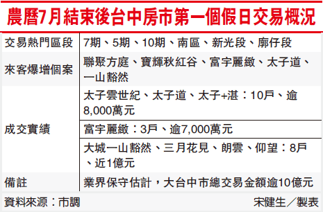 蘇良智說,近期在北部建商高價搶地、港商有意進駐等利多刺激下,臺中推桉建商大型化、財團化儼然蔚為風潮,七期、五期、國美館特區等豪宅市場買氣明顯活絡。