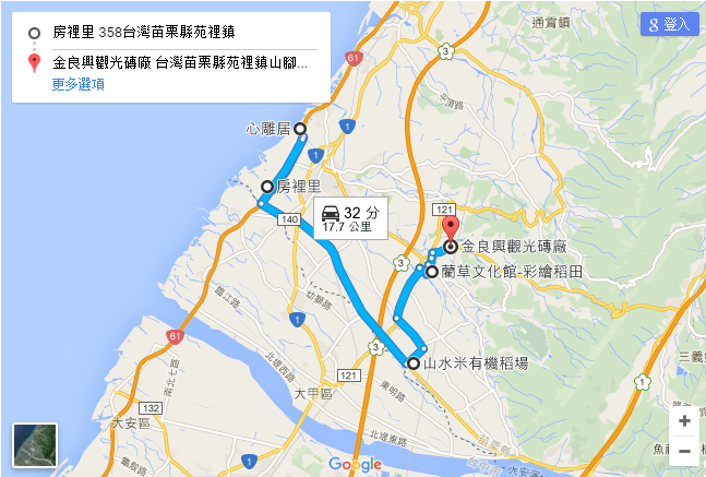 第二天:A.房里古城/蔡家古厝/義渡埤/順天宮 1.7km B.心雕居 9.9km C.山水有機(jī)米稻場(鴨間稻) 4.5km D.藺草文化館 1.2km E.灣麗磚瓦文物館 2.5km F.建議住宿苑里鄉(xiāng)
