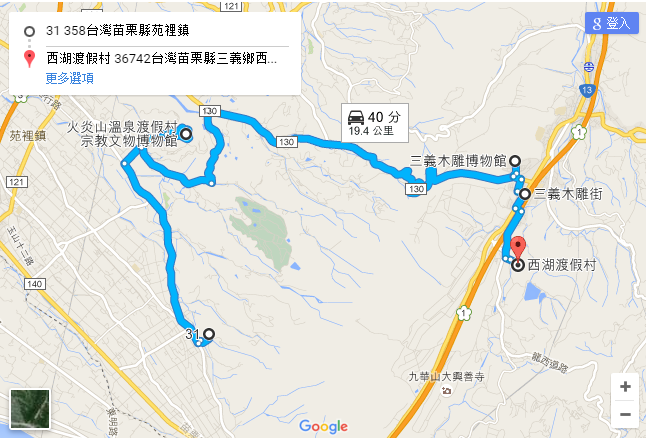 第三天: A.華陶窯 3.9km B.火炎山游樂區(qū) 10.9km C.三義木雕博物館 0.8km D.木雕街 1.4km E.西湖渡假村
