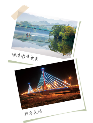 猶如人間仙境的明德水庫,令人陶醉,保有原始風貌的古道和步道,及具備傳統色彩的文化館與民間信仰,在時代變遷下更顯珍貴,是一條富含生態與人文的休閑旅游線。