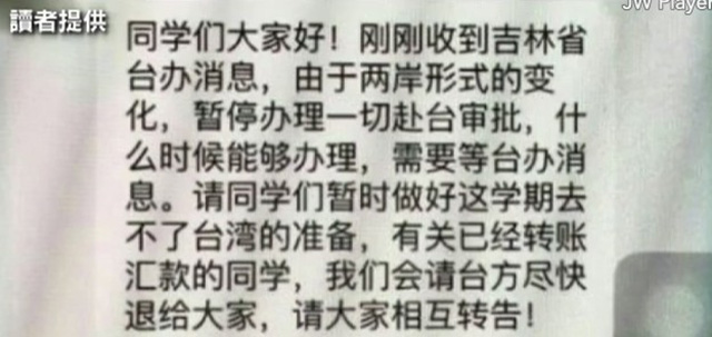 還有傳言說,吉林省臺辦已下令暫停辦理陸生赴臺的審理、批準作業。