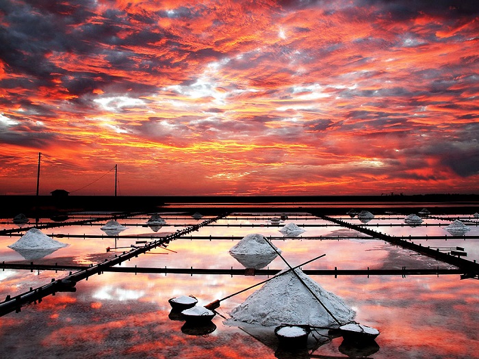 位于北門的井仔腳瓦盤鹽田,是臺灣現存唯一仍人工曬鹽的鹽田。來到這里不僅可騎單車體驗鹽田風光,也能親自體驗曬鹽、挑鹽、收鹽及踩水車等樂趣。