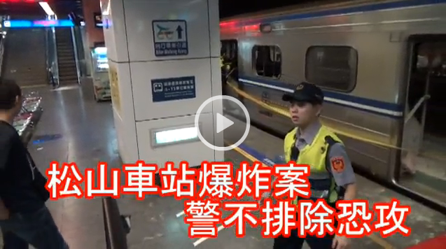 臺北松山火車站昨晚驚傳電聯車車廂爆炸案。臺鐵1258次北上區間車,昨晚10時開往松山站途中,第6節車廂突傳出爆炸聲,現場驚叫連連,許多乘客身上沾滿血跡,至少24人因燒燙傷送醫,目擊者形容:現場有如去年的八仙塵爆。另有目擊者指證一名年約40歲黑衣男子拿著一根嚇人的長條形暗黑色物品,重新組裝后即發生爆炸。警方表示,爆炸案不排除是恐怖攻擊,已全面追查炸彈客,鐵路和各捷運警察也全面提升安檢。
