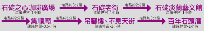 參觀景點(diǎn): 集順廟、石碇淡蘭藝文館、百年石頭厝