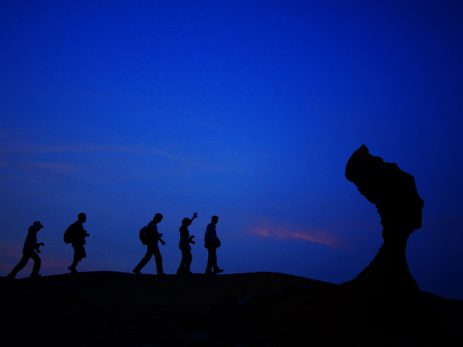 站在野柳岬角邊緣,一望無際的海在眼前延展,處處羅列著各式各樣琳瑯滿目、大大小小奇形怪狀的巖石:蕈狀石、豆腐石、象鼻石、仙女鞋、女王頭,真的令人懷疑是否曾經有仙人到此雕塑過,留下神奇的遺跡給人間,而巖壁上規則的橫紋,是唯一的見證,見證這里堆疊的巖石,如何被時間、氣候雕刻幻化,在無可追擬的遙遠時空歷程里,一點一滴刻劃,一分一秒蝕變,終于凝結為大自然美麗無比的杰作,豐富萬千,令人玩味。