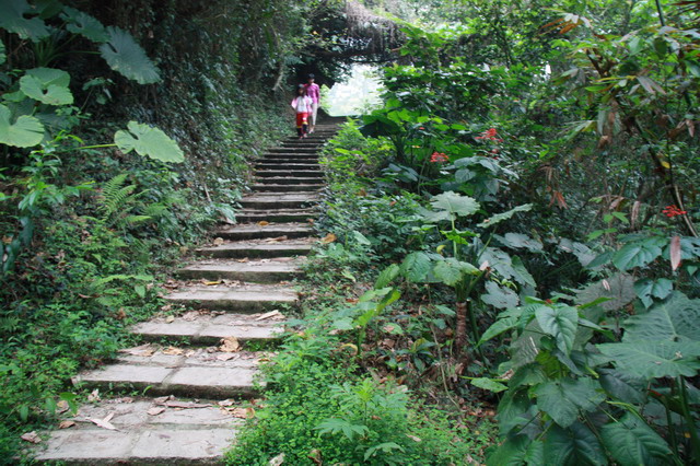 荷苞山有一處由石階鋪設而成的步道,該步道空氣新鮮、環境幽靜,沿途綠意盎然、林蔭涼爽,尤其到了四、五月間油桐花盛開,形成一幅白花點綴綠林的圖畫,更添詩意。 荷苞山步道全長約兩公里,走過石階步道轉進入荷苞山三角點,即為地勢平坦的石板步道,視野景觀相當優美。